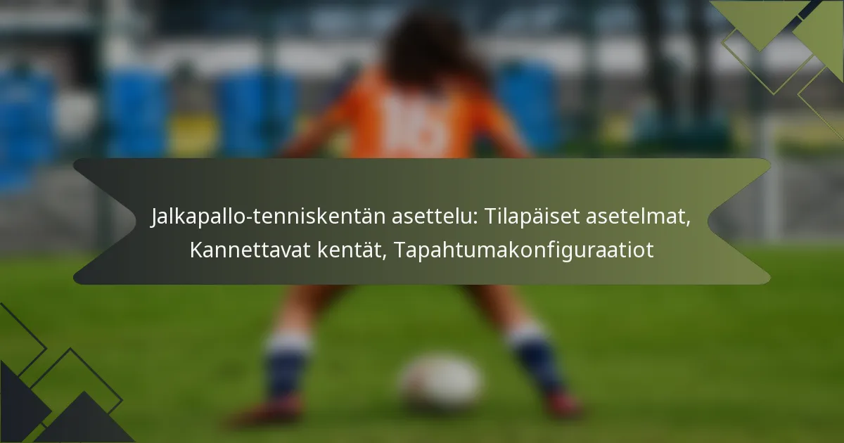 Jalkapallotenniskenttiä voidaan konfiguroida eri tavoin erilaisten tapahtumien ja tilojen tarpeisiin, mukaan lukien tilapäiset ja siirrettävät ratkaisut. Yksityiskohtaiset mitat, varustetarpeet ja turvallisuusnäkökohdat ovat olennaisia, jotta pelaajille ja katsojille voidaan luoda miellyttävä kokemus. Oikealla lähestymistavalla voit varmistaa onnistuneen ja mukaansatempaavan ympäristön kaikille jalkapallotennistapahtumille.